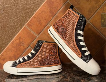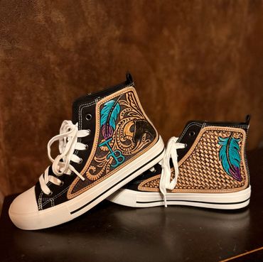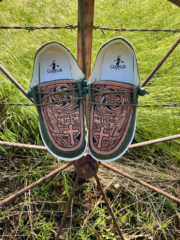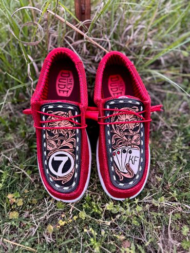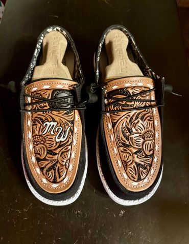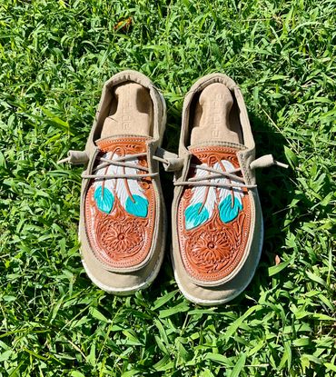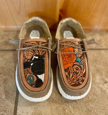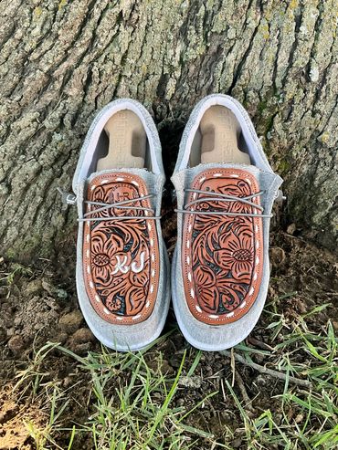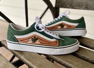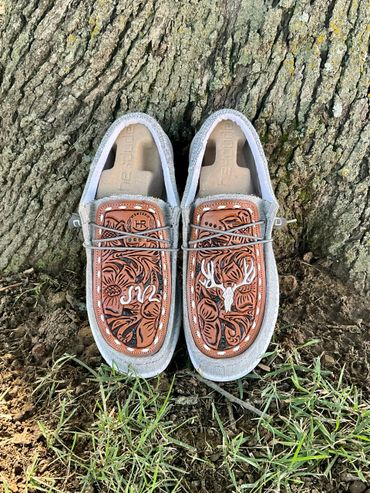 I use Hermann Oak leather for all of my patches, and kangaroo lace for the buck stitching. If you are interested in ordering a pair of custom Hey Dudes or Vans, please click the button below to contact me.